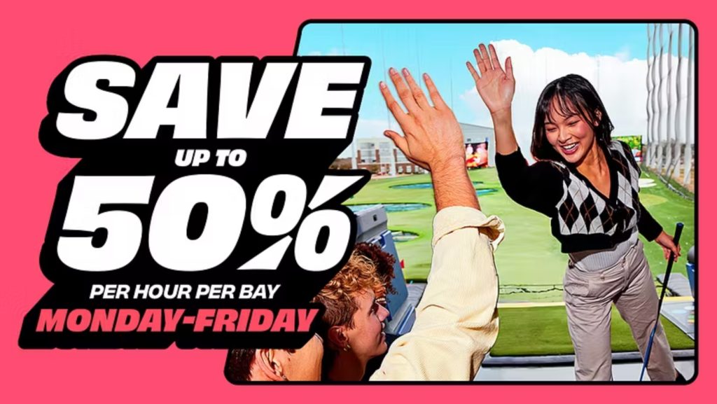 Visit TopGolf on weekdays from open to 4PM and enjoy 50% off peak price when you book online